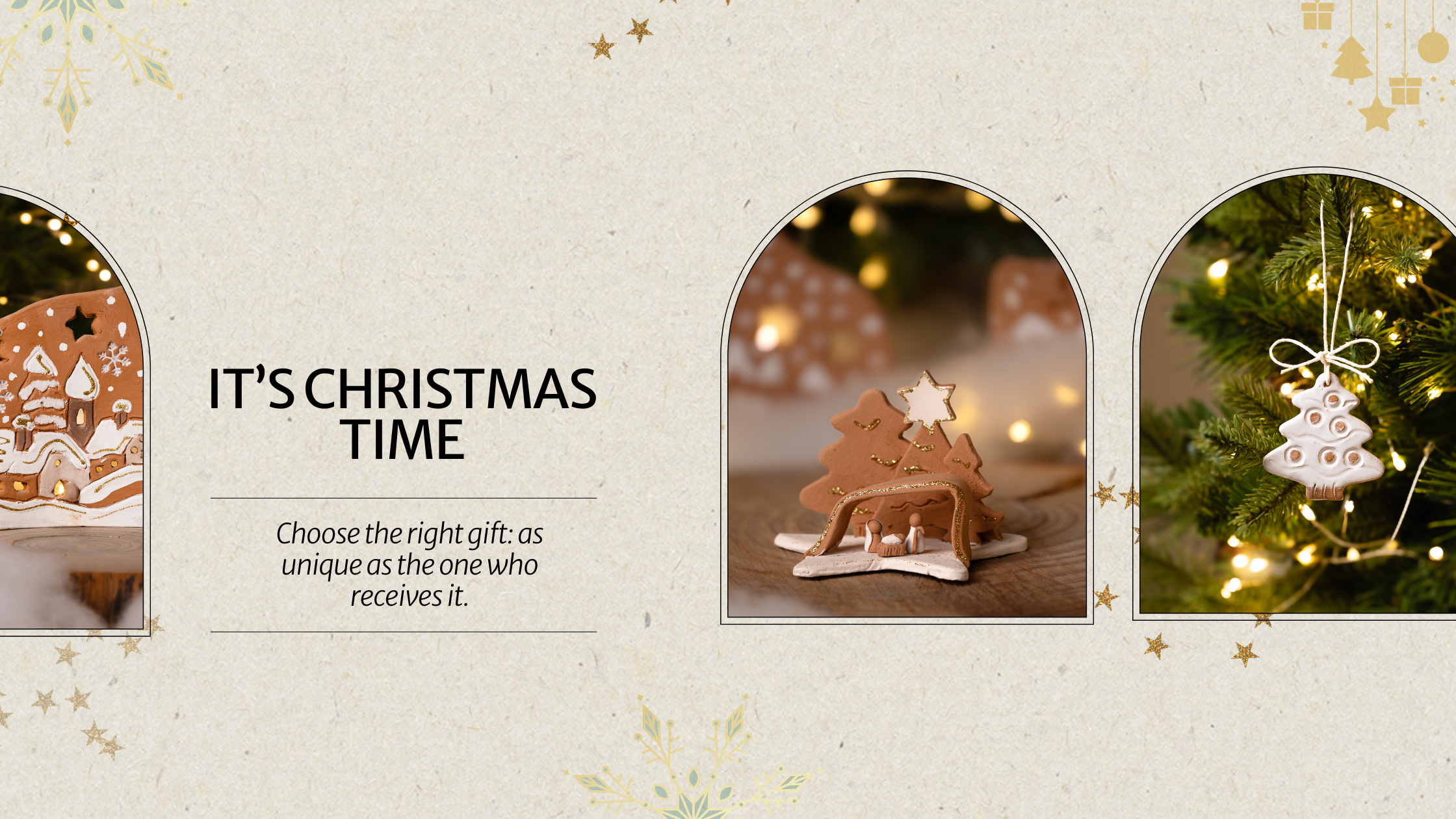 Every detail tells a story. Our ceramic creations are designed to bring warmth, light, and authenticity to the holidays: small handmade nativity scenes, mountain landscapes that evoke the quiet of winter, and delicate Christmas tree pendants.