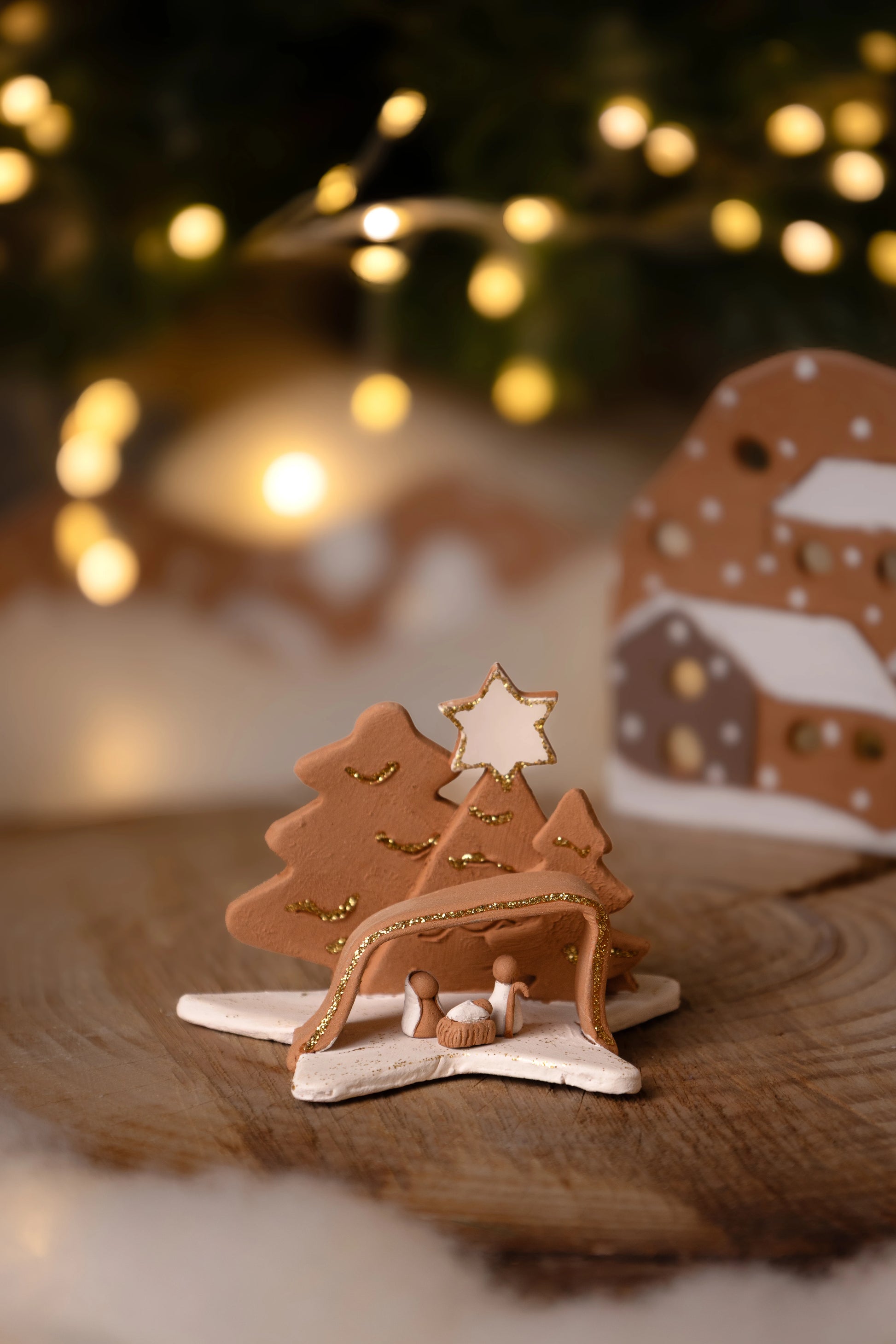 Piccolo presepe in terracotta modellato artigianalmente. Ogni figura è rifinita a mano, con dettagli essenziali che mettono in risalto la qualità del materiale e della lavorazione. La sua dimensione compatta lo rende perfetto per arricchire piccoli ambienti, mentre lo stile minimalista si adatta facilmente sia a decorazioni moderne sia a contesti più tradizionali.